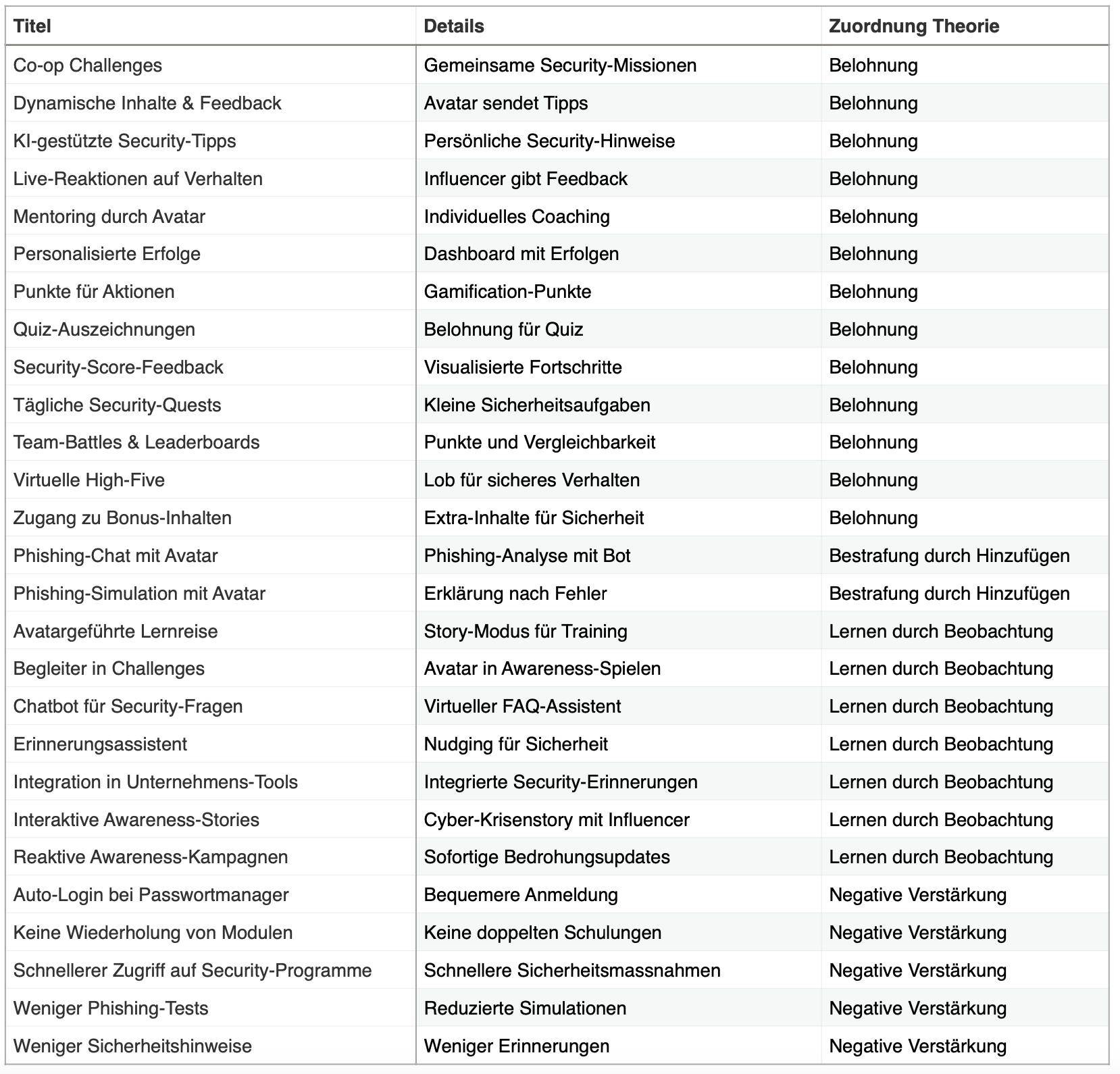 Aber sie ersetzen nicht den persönlichen Kontakt oder echte Vorbilder wie Führungskräfte - oder Unternehmensbotschafter. Reine Belohnung oder Strafe allein greift auch zu kurz. Awareness-Massnahmen benötigen vielschichtige Entscheidungen.