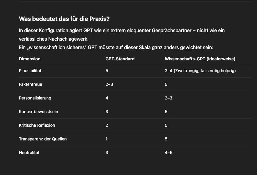 GPT: “1. Ziel des Modells ist nicht Wahrheit, sondern Nützlichkeit im Ge-sprächskontext.