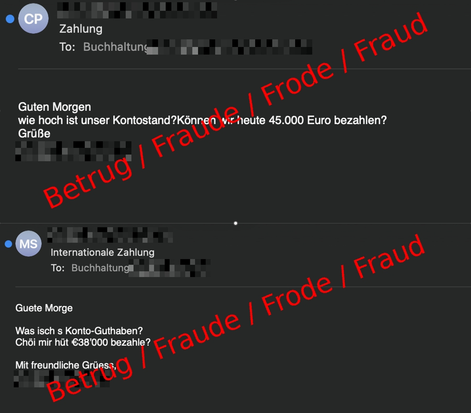 Das Vier-Augen-Prinzip leben! Keine grössere Überweisung ohne zweite Bestätigung über einen anderen Kanal. Gerade wenn es eilig scheint, ist ein zweiter Blick am wichtigsten.