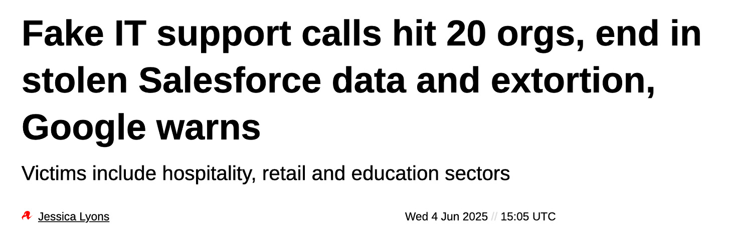 Ein Fall von gefälschten IT-Support Calls führte dazu, dass Mitarbeitende von Salesforce durch einen Voice Phishing Angriff dazu verleitet wurden, eine manipulierte App zu autorisieren und sensible Unternehmensdaten preiszugeben.